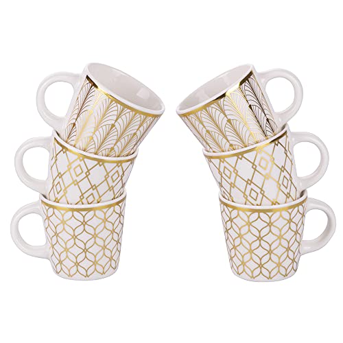 Villa d'Este Home Tivoli set med 6 espressomuggar från New Bone Kina, Charleston, vit + guld, medium