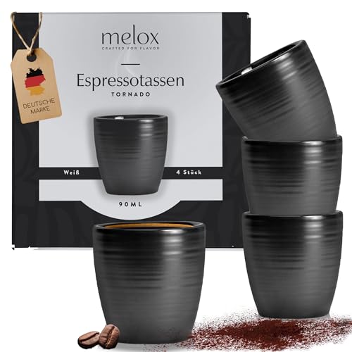 MELOX – uppsättning med 4 espressomuggar tornado-Line porslin svart matt – 4 x 90 ml för kaffe, espresso och macchiato – mockakoppar tjockväggiga utan handtag – kaffekoppar, kaffe, italiensk design