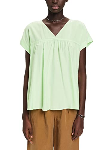 ESPRIT kortärmad blus med V-ringning, 320/citrusgrön, M