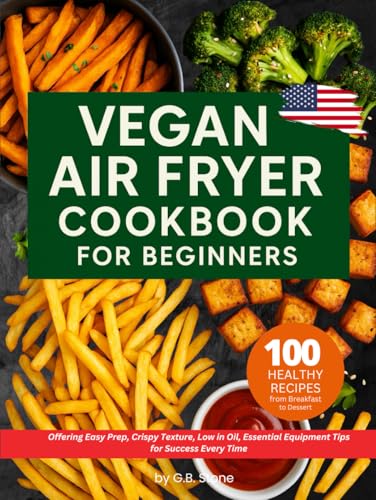 Vegan Air Fryer Cookbook for Beginners: 100 Healthy Recipes from Breakfast to Dessert. Offering Easy Prep, Crispy Texture Low in Oil, Essential Equipment Tips for Success Every Time