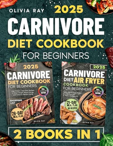 Carnivore Diet for Beginners – 2 Books in 1: Essential Carnivore Cookbook & Air Fryer Guide with Easy High-Protein Recipes, 28- Day Meal Plan & Color Photo