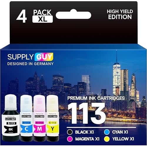 Supply Guy Bläck kompatibel med Epson 113 för EcoTank ET-5150 ET-5170 ET-5800 ET-5850 ET-16150 ET-16650 (4 Bläckflaskor av 1x127ml, 3x70ml)