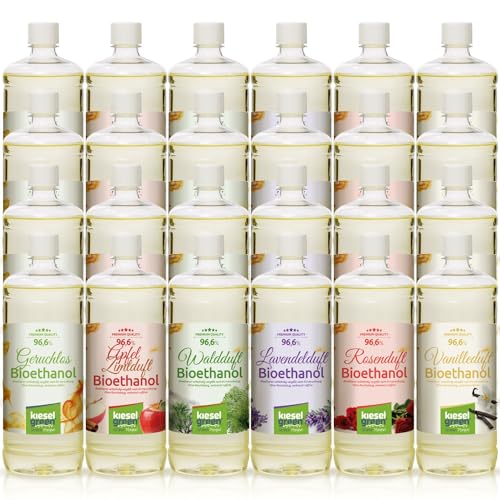 KieselGreen bioetanol luktfri 24 x 1 liter set för etanolkamin – premium ekologisk etanol öppen spis inomhus eller bioetanol bordseld ... (M2)