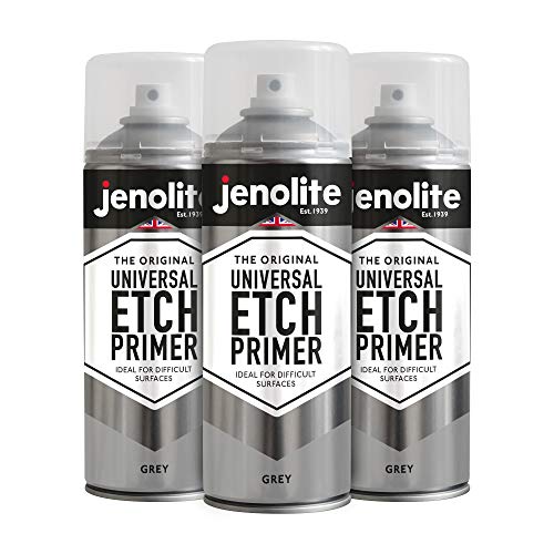 JENOLITE Universal Etch Primer sprayfärg | GRÅ | Högpresterande syraetchprimer för svåra ytor inklusive aluminium, galvaniserat stål, rostfritt stål och de flesta metallytor | 3 x 400 ml