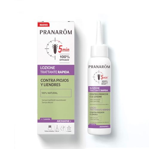 PRANAROM, Aroma, lotion Flash-behandling mot löss och nits, fungerar inom 5 min, 100 % effektiv, eterisk olja av lavendel och kokosnöt BIO, 100 ml med kam
