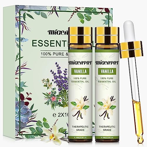 MIGCAPUT Vanilla Eterisk Olja 2 x 10ML, 100% Ren Naturlig Aromaterapi Eteriska Oljor Set, Terapeutisk Kvalitet Vaniljolja för Luftfuktare Diffusor, SPA, Massage, Sömn, Tvål