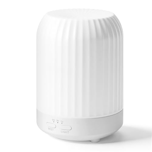 GuKKK Aroma diffuser, vit keramisk diffusor för eteriska oljor, aromaterapi dofter luftfuktare med justerbart dimläge, 7 färger LED, timerinställning, för sovrum, yoga, kontor (100 ml)