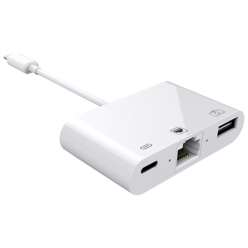 Adapter 3-i-1 Lightning till RJ45 Ethernet / USB / Lightning - Vit