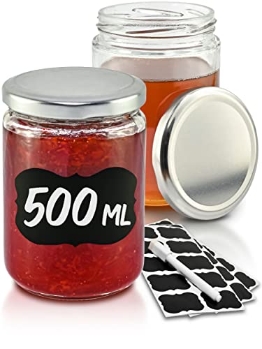 Praknu 12 konserveringsburkar 500 ml med lock, etiketter - Lufttäta twistoff burkar för konservering