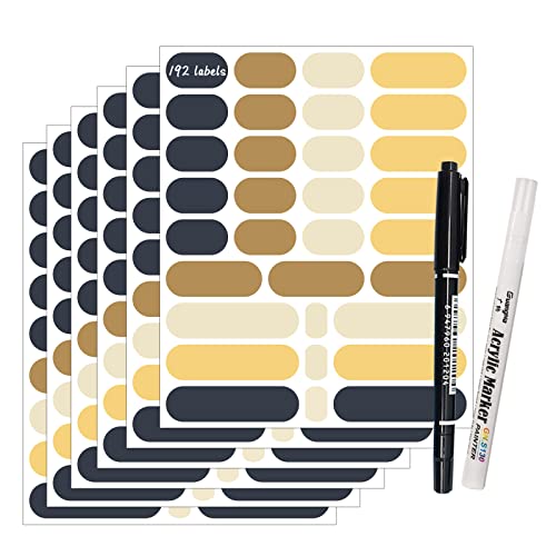 JaoNanl Kraftetiketter tomma fina etiketter klistermärken 192 st blandade självhäftande klistermärken med en markör för gåvor, dekoration, förvaring, flaskor, burkar, matbehållare, hantverk,