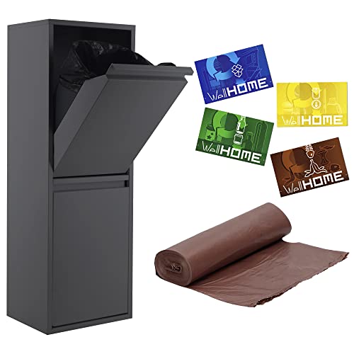 WELL HOME MOBILIARIO & DECORACIÓN Återvinning System Multipurpose 2 Cube Steel, Antracit, MED Set med 4 magnetiska etiketter full färg återvinning, och 20 pack 20 x 20L sopor påsar med självstängning