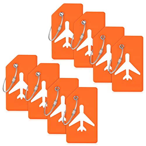 Flintronic 8 st bagagelaggar, glänsande färg mjuka silikon resväska etiketter med stålkabel och ID-kort med resenamn, incheckat bagage (orange)