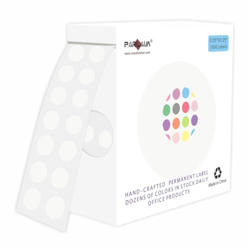 PARLAIM 1/4 tum rund färg kodning cirkel prick klistermärke etiketter, 1 000 st per rulle i dispenserlåda, 0,25 tum vit