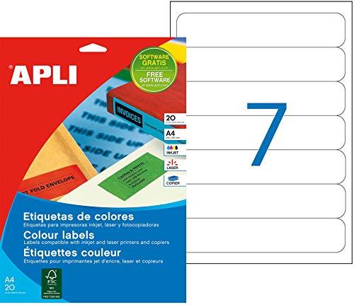 APLI 100313 - fodral 192 multipurpose etiketter 70 x 37 mm - raka hörn - färg: vit