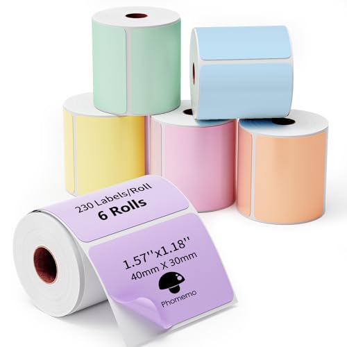 Phomemo M110/M220/M221/M200/M120 färgade självhäftande etiketter 40 x 30 mm (1,57 tum x 1,18 tum 6 rullar färg termoetikettpapper för M110/M221/M120/M200/M220 etikettskrivare, 230 per rulle