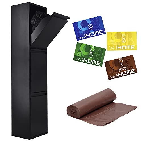 WELL HOME MOBILIARIO & DECORACIÓN Återvinningssystem 3 kuber Multipurpose stål, Svart, MED Set med 4 magnetiska etiketter återvinning full färg, och 20 pack 20 x 20L sopor med självstängning