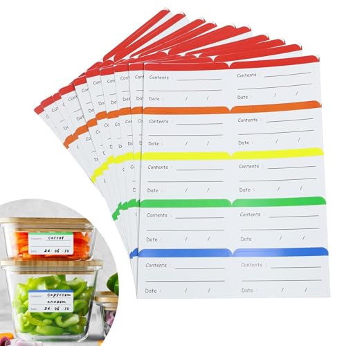 Paket med 100 självhäftande etiketter som är lätta att ta bort, frysning för färgglad märkning för fryst mat som inte lämnar klibbiga rester efter användning (färg)