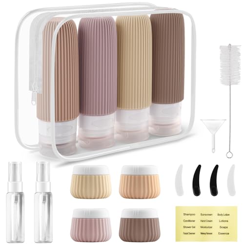 Foydream 18 Styck Reseflågor För Fyllning, Silikon Reseflågor Set, Resestörrelse Behållare Omfattning Silikonflaskor, Cremeboxen, Sprayflaskor, Cremeleffel, Fungar, Borstar och Etiketter (färg)