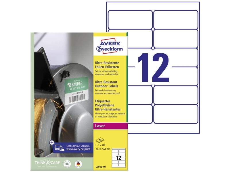 Avery-Zweckform L7913-40 Universella Etiketter 99,1 X 42,3 Mm Polyetenfilm Vit 480 St Permanent Vidhäftning Färg Laserskrivare, Laserskrivare