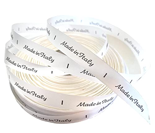 IPEA 150 Eleganta etiketter med inskription Made in Italy i Satin Sy – Slipband Skärbar etikett för kläder, Inredning, T-Shirt, Tillbehör – Långa 6,5 cm – Färg Vit