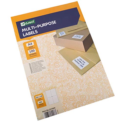 D.RECT självhäftande etiketter universaletiketter (105 x 148 mm på DIN A4) självhäftande 100 ark/förpackning 4 etiketter/blad 400 stycken vita