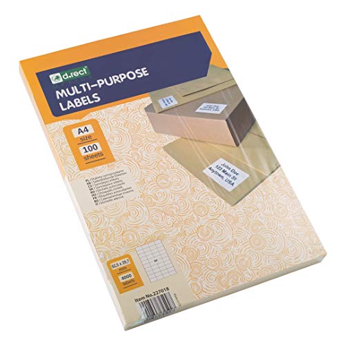 D.RECT självhäftande etiketter universaletiketter (52,5 x 29,7 mm på DIN A4) självhäftande 100 ark/förpackning 40 etiketter/blad 4 000 stycken vita