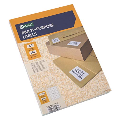 D.RECT självhäftande etiketter universaletiketter (64 x 33,8 mm på DIN A4) självhäftande 100 ark/förpackning 24 etiketter/blad 2 400 stycken vita