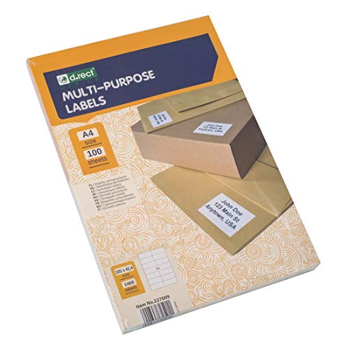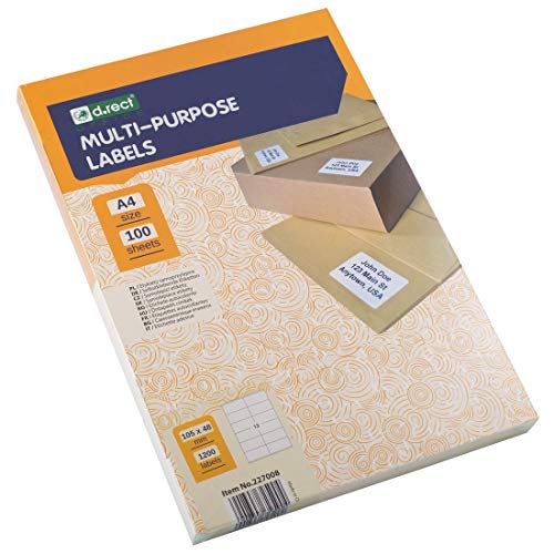 D.RECT självhäftande etiketter universaletiketter (105 x 48 mm på DIN A4) självhäftande 100 ark/förpackning 12 etiketter/blad 1 200 stycken vita