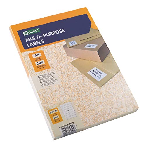 D.RECT självhäftande etiketter universaletiketter (105 x 37 mm på DIN A4) självhäftande 100 ark/förpackning 16 etiketter/blad 1 600 stycken vita