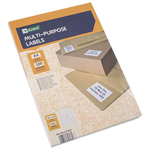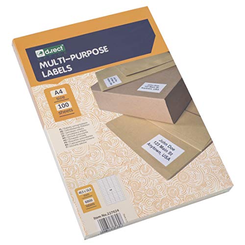 D.RECT självhäftande etiketter universaletiketter (48,5 x 16,9 mm på DIN A4) självhäftande 100 ark/förpackning 68 etiketter/blad 6800 stycken vita