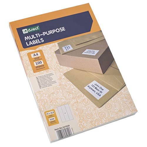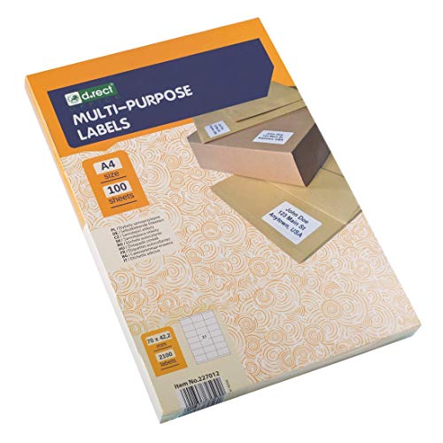 D.RECT självhäftande etiketter universaletiketter (70 x 42,5 mm på DIN A4) självhäftande 100 ark/förpackning 21 etiketter/blad 2 100 stycken vita