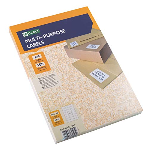 D.RECT självhäftande etiketter universaletiketter (70 x 37 mm på DIN A4) självhäftande 100 ark/förpackning 24 etiketter/blad 2 400 stycken vita