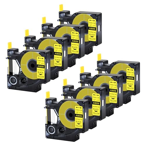 Cruxer 8-pack ersättning för Rhino A18056 18056 1/2" 12mm krympslang svart på gul industriell trådtejp för Rhino 4200 Rhino 5000 Rhino 5200 Rhino 6000 etikettmaskin