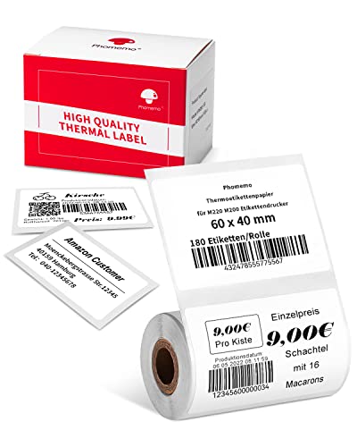 Phomemo termiskt etikettpapper för etikettskrivare M220 M250 M221, multifunktionell självhäftande etikett, för kontor, lager, adressetikett, 60x40 mm, 100 etiketter/rulle