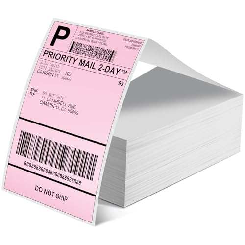 Phomemo fraktklistermärken 4 × 6 DHL-etiketter, termopapper fraktetiketter för etikettskrivare vattentätt etikettpapper (rosa 500 stycken)