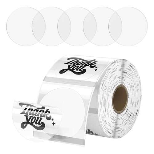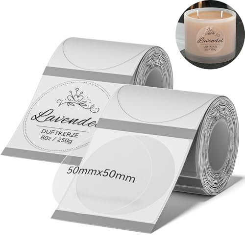 2 x etiketter kompatibla med NIIMBOT B1 B21 B3S etikettskrivare, 50 x 50 mm etikettpapper, svart tryck på vitt etikettpapper, 150 etiketter/per rulle (transparent, rund)