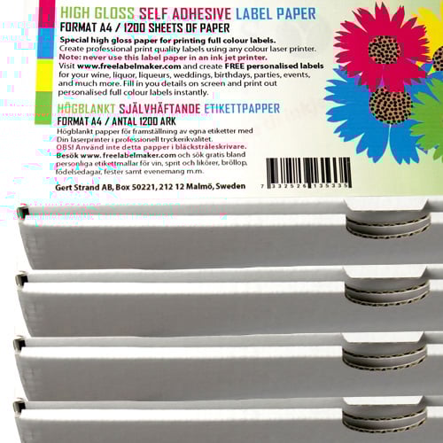 Självhäftande högblankt A4 etikettpapper, 1200 ark