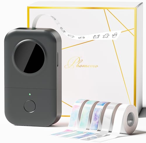 Phomemo D30 Bärbar Etikettskrivare Bluetooth etiketttillverkare Termisk mini Etikettskrivare med 5 rullar etikettpapper för hem, kök, skola, kontor, etikettskrivare kompatibel med iOS & Android