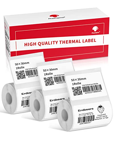 Phomemo Etikettpapper för etikettskrivarna M220 M250 M120 M110 M221, multifunktionell självhäftande etikett för streckkod, namn, pris, adress med mera, 50x30mm, 230 etiketter/rulle, 3 rullar