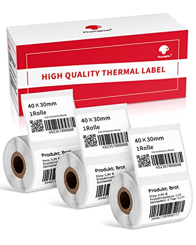 Phomemo Etikettpapper för etikettskrivarna M220 M250 M120 M110 M221, multifunktionell självhäftande etikett för streckkod, namn, pris, adress med mera, 40x30mm, 230 etiketter/rulle, 3 rullar