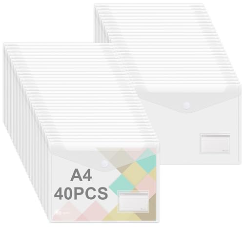 Agoer kardborrestängning dokumentväska A4, 40 stycken dokumentmapp A4 transparent DIN A4-mapp med etikettpapper för att organisera dokument, A4-väska för skola, hem, kontor