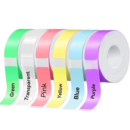 6 rullar etiketttillverkarband, 12 x 40 mm termoetikettband, etikettpapper för etikettskrivare P15/D30, 990 etiketter/6 rullar (färgglad + transparent)