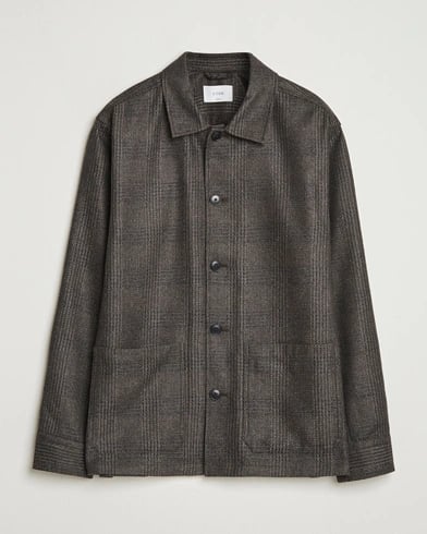 Eton Wool/Cashmere Checked Overshirt Dark Grey