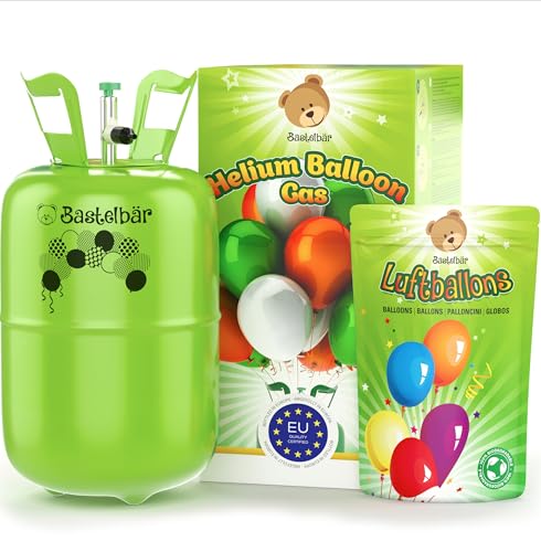 Helium gasflaska + 100 ballonger ekologiskt testad "mycket bra" • garanterat 420 l ballonggas ✓ för ca 50 ballonger ✓ Tillverkad i EU ✓ Helium Ballonggas • praktiskt fyllningssystem för fest, bröllop