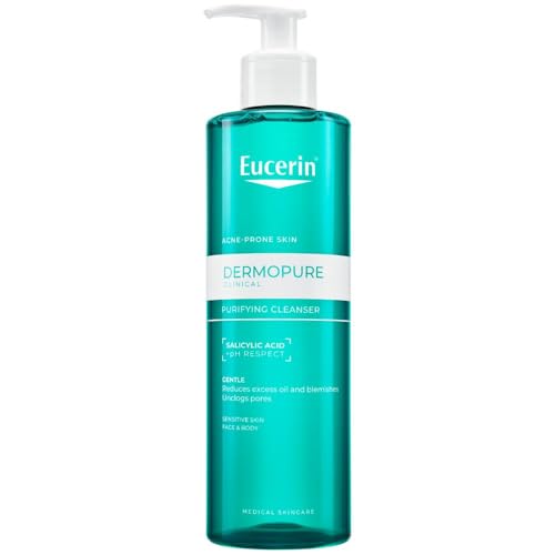 Eucerin DermoPurifyer Oil Control Gel ansiktsrengöring 400 ml, skummande ansiktsrengöring utan effektiv tvål som sminkborttagare, formel med salicylsyra och anfotensider för fet och aknehud