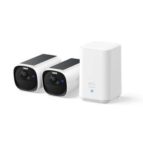 eufy Säkerhet eufyCam E40 2-Cam Kit (HomeBase 2), Utomhus Trådlös Solenergi Säkerhetskamera, 2K-Upplösning med Integrerat Solpanel, MaxColor Nattsyn, Expanderbar Lokal Lagring, Ingen Månadsavgift