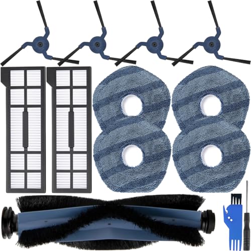 EATBALE Reservdelar för Eufy X10 Pro Omni robotdammsugare inkluderar 1 x huvudborste, 4 x sidoborstar, 4 x moppdukar, 2 x filter, gummirullborste moppdyna hepa filter tillbehörssats