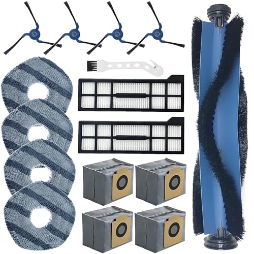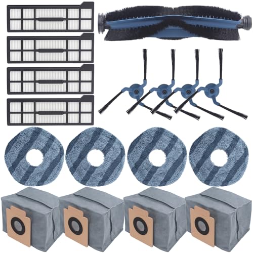 Geoviizon 17-pack reservdelssats för eufy X10 Pro Omni robotdammsugare, 1 rullborste, 4 sidoborstar, 4 tvättbara filter, 4 moppdukar, tillbehör