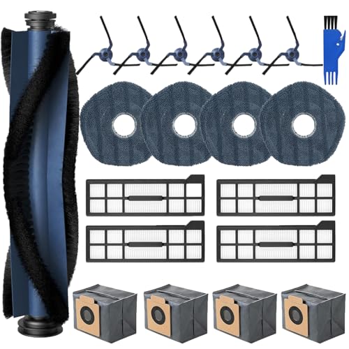 21 stycken tillbehörsset för eufy X10 Pro Omni robotdammsugare, 1 rullborste, 6 sidoborstar, 6 tvättbara filter, 4 dammpåsar och 4 torkdukar, reservdelsset för eufy X10 Pro Omni