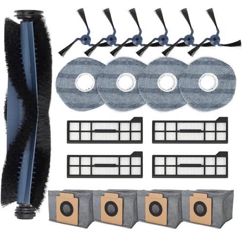KiimSin Tillbehörsset för Eufy X10 Pro Omni dammsugarreservdelar, huvudborste, 4 torkdukar, 4 sidoborstar, 4 dammpåsar, 2 filter